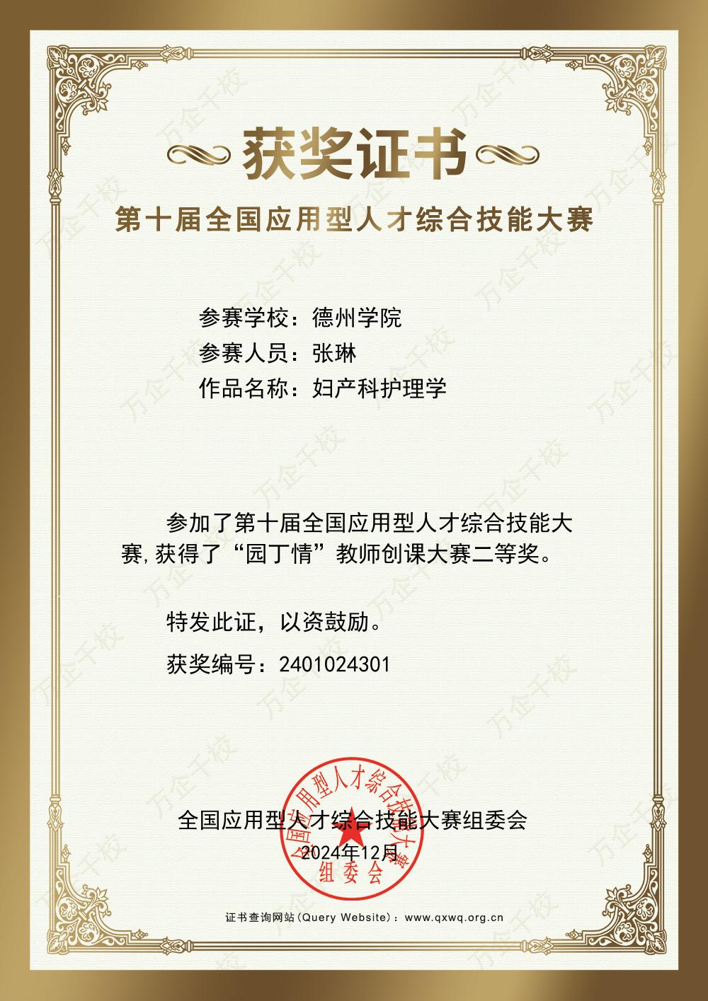 近日,由教育部全国应用型人才综合技能大赛委员会主办的第十届全国应用型人才综合技能大赛成绩公布,w66旗舰厅教师张琳荣获“园丁情”教师创课大赛二等奖。