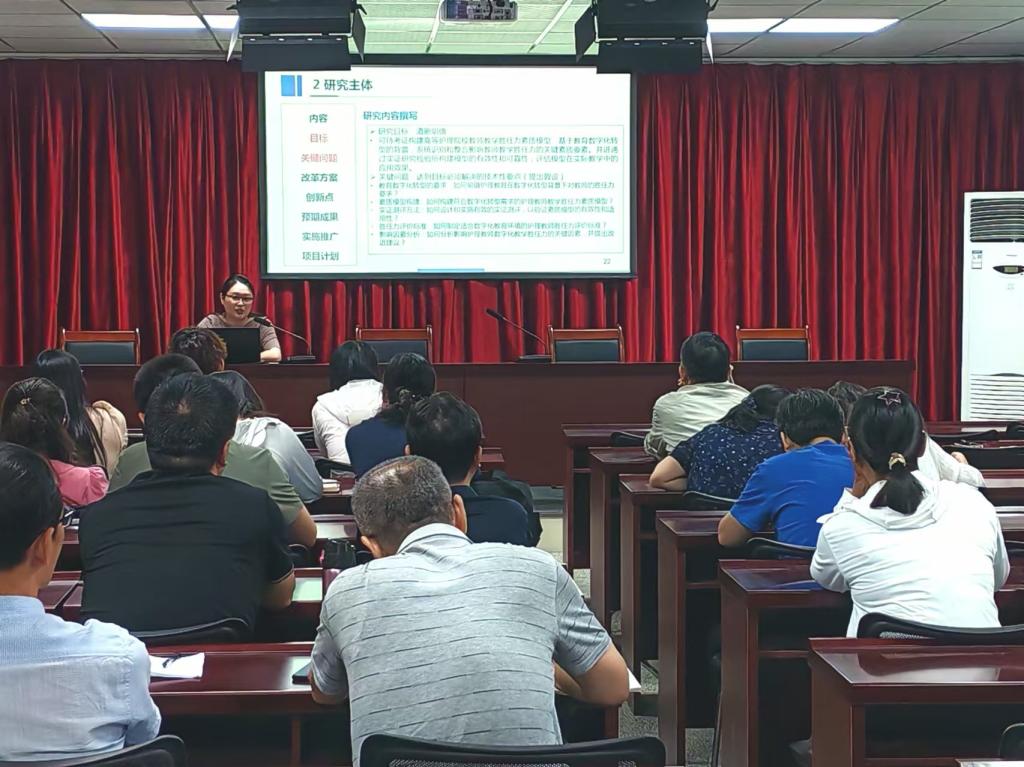 w66旗舰厅为响应公司庆祝第40个教师节暨教师能力提升月活动号召,全面提升教师的教学科研能力,在校级教学改革项目申报之际,于9月3日下午举办了教学改革项目申报经验分享会,相关负责人主持会议,全院从事一线教学的教师均参会。
