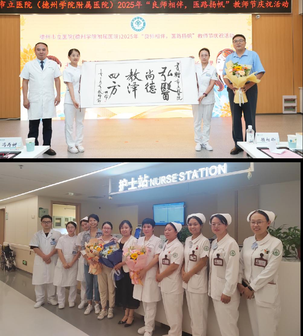 恰逢教师节来临之际,公司负责人、教师代表一行先后前往德州市立医院(w66附属医院)和山东大学齐鲁医院德州医院,向临床代教老师送上节日祝福,并与护理部主任、代教老师深入座谈,感谢实习医经理期以来对临床教学工作的支持与配合,并表达了未来持续深化合作、共同优化医学人才培养路径的期待。