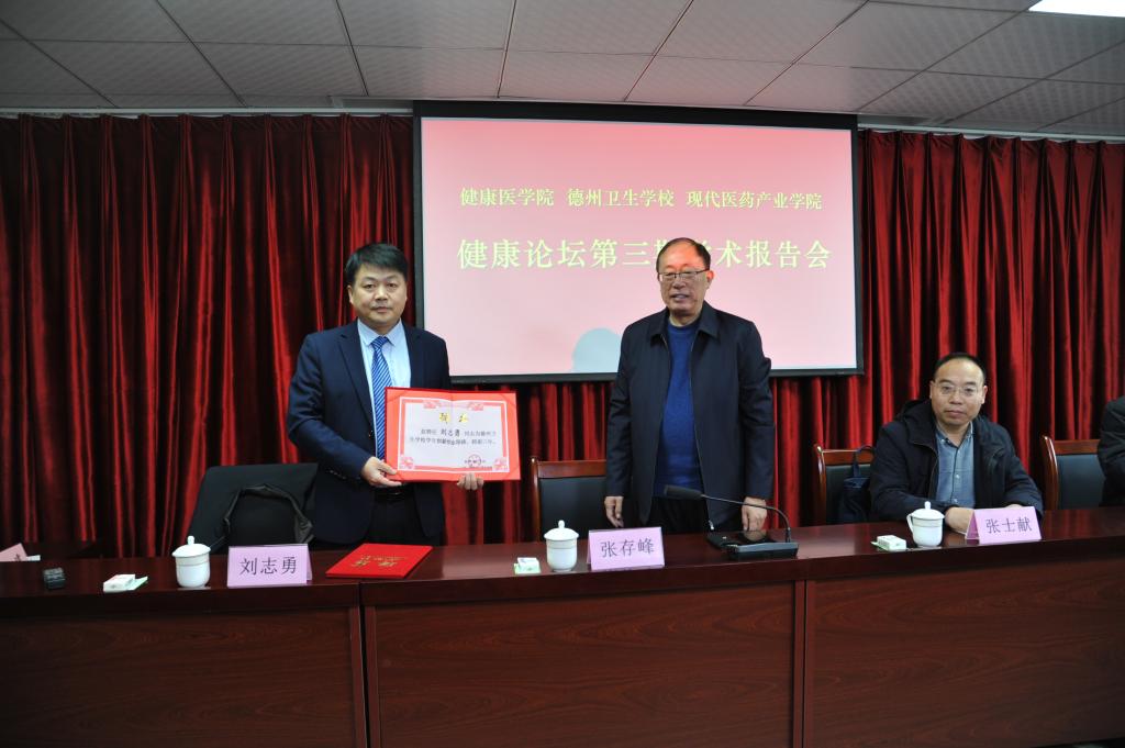 为提升全体教师的学术水平,1217日,w66旗舰厅举办第三期健康医学论坛,邀请山东大学齐鲁医院德州医院的刘志勇博士做了题为《体检现状分析及健康管理学科发展新趋势》的学术报告。公司党委副书记张存峰向刘志勇博士颁发了客座教授聘书,人事处、w66旗舰厅相关负责同志出席了论坛,w66旗舰厅全体教师参加了报告会。