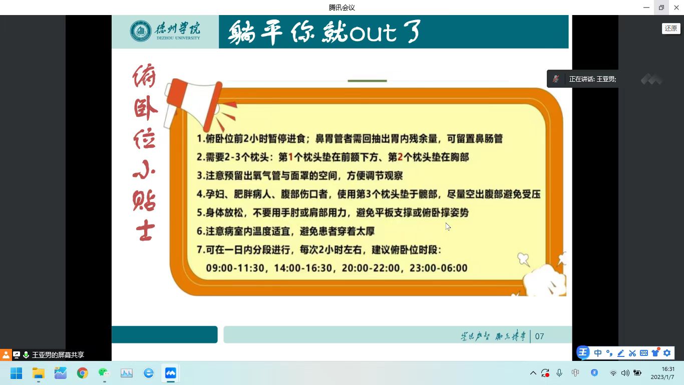 王亚男老师围绕新冠病毒的来源、性状、传播途径、易感人群及症状、如何预防新冠病毒,如何应对新冠后遗症等问题进行了科普,就如何做好个人防护、正确佩戴口罩的方法以及七步洗手法进行了重点讲解,会后和同学们进行了深入的互动交流。