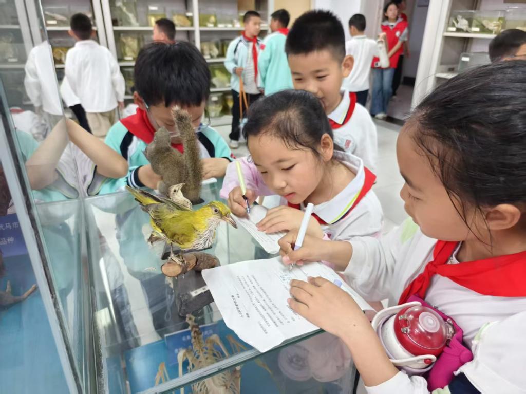 探秘科普基地,解锁科学奥秘。踏入基地,讲解员在人体生命奥妙馆和人体科学馆,为同学们生动讲解人体结构,揭开人体神秘面纱。随后,同学们依次参观动物标本实验室,探寻动物进化密码;走进植物昆虫标本室,领略自然造物之妙;驻足中医药国粹展示馆,感受传统医学博大精深。最后,大家来到地质矿物展览室,近距离感受自然与生命科学交织的神奇魅力。