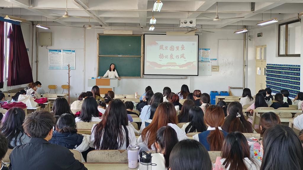 2023年4月18日下午,医药与护理公司第35期入党积极分子培训班在体育楼414教室持续开讲,医药与护理公司党委副书记孙晨晨以《筑坚固堡垒,扬优良作风》为主题给全体入党积极分子讲述了一场生动的党课。