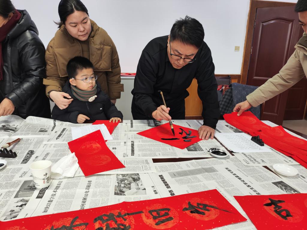 红纸铺展,墨香四溢,爱好书法的老师们以深厚的书法功底挥毫泼墨,笔走龙蛇,爱好书法的员工们则在认真观摩老师的运笔,在老师的指导下,用心感受汉字的魅力与力量,体验中华文化的深厚底蕴,使自己的书法更近完美,将心中的美好祝愿化作一幅幅寓意吉祥的春联和一个个饱满圆润的福字。
