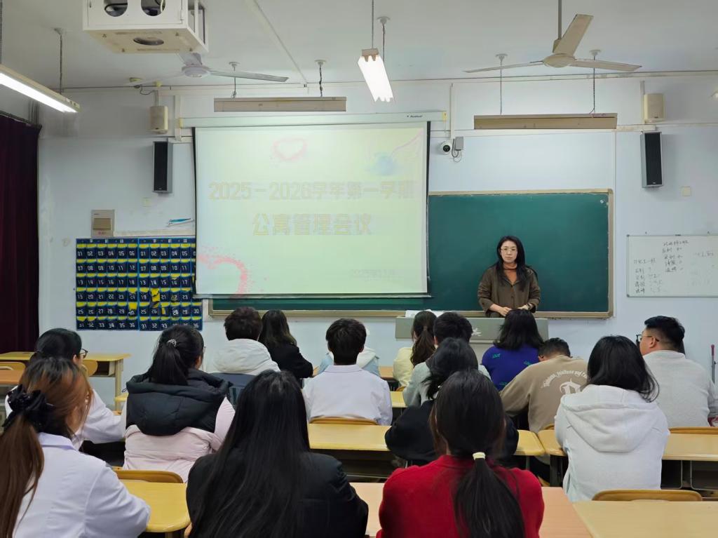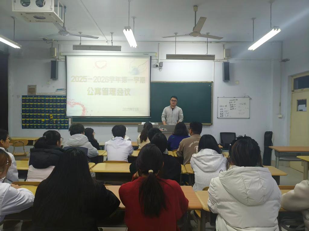 会上,两位负责公寓管理工作的辅导员系统阐述了本学期公寓管理的重点任务,内容涵盖公寓安全管理、环境卫生整治、室友关系建设等多个方面。各宿舍长结合日常管理中遇到的实际问题展开深入交流,并提出多项建设性意见,如加强日常卫生提醒、完善晚归管理机制、开展文明宿舍评选活动等。会议特别强调要发挥员工在公寓管理中的主体作用,鼓励大家积极参与公寓文化建设,携手营造安全、文明、和谐、温馨的生活环境。