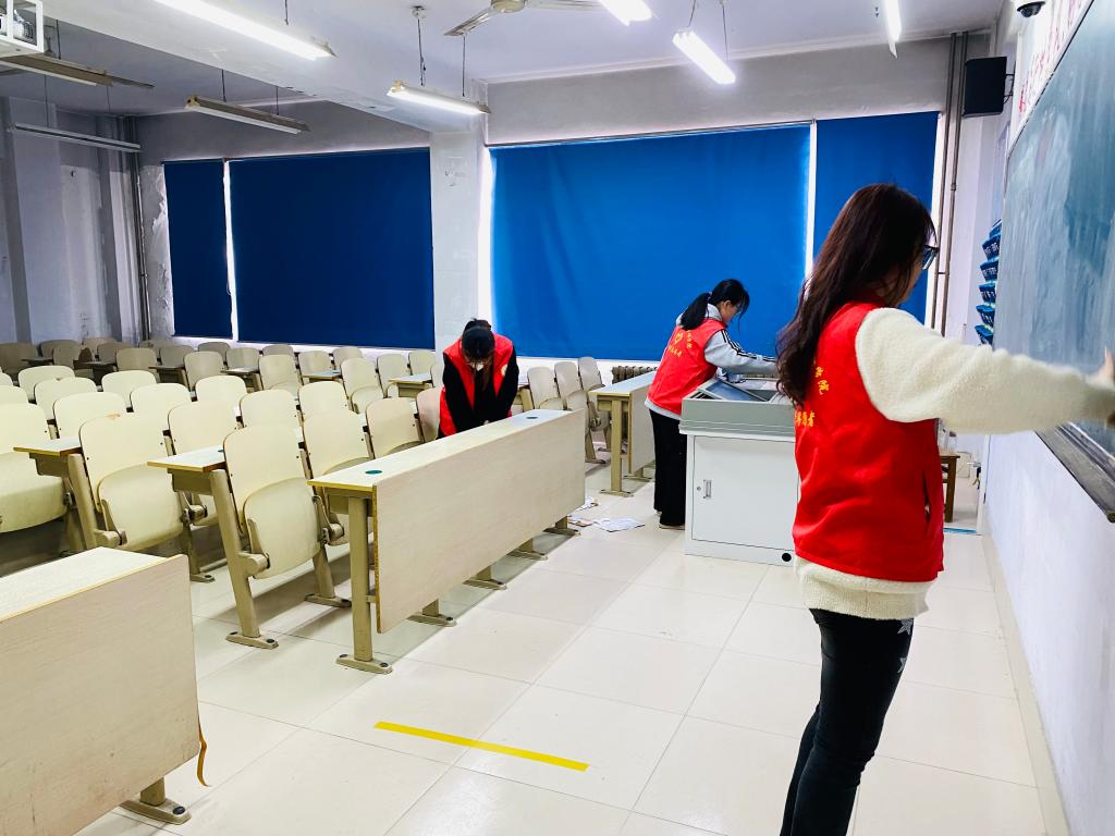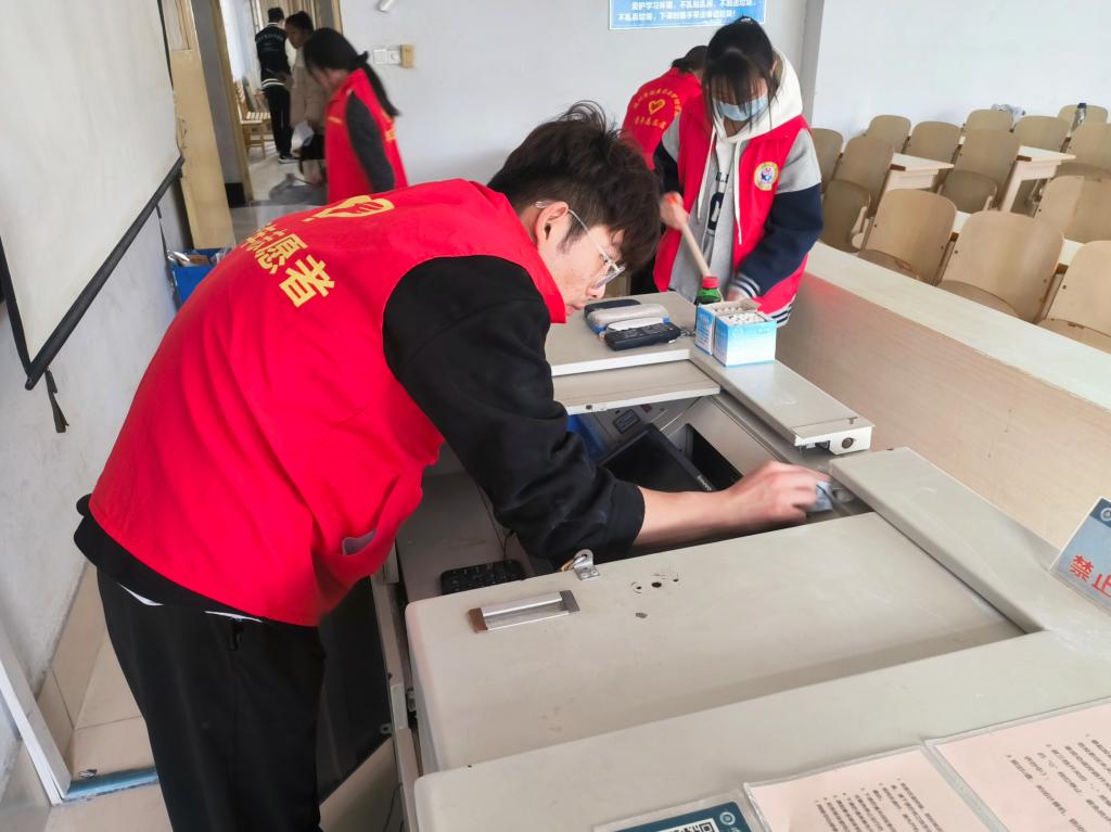 活动过程中,志愿者们按照活动前期任务分配,四人一组前往各自任务区展开活动。志愿者成员们手拿垃圾袋、扫把等卫生工具一丝不苟的清洁着每一间教室。从讲台到角落,志愿者们以认真的态度,高质量的完成着任务,志愿者们不说苦,不喊累的良好精神风貌为生机盎然的春天增添了一份份活力。