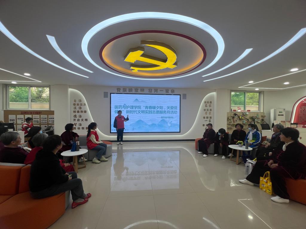 为深入学习贯彻党的二十大精神,传承“五四”精神,进一步提高社区居民的健康观念,提升中老年人的健康保健意识,传播健康理念,倡导良好的生活方式。医药与护理公司员工党员、南丁格尔志愿服务队于5月9日在岔河社区开展“青春暖夕阳,关爱促健康”的知识讲座及教学八极拳活动。