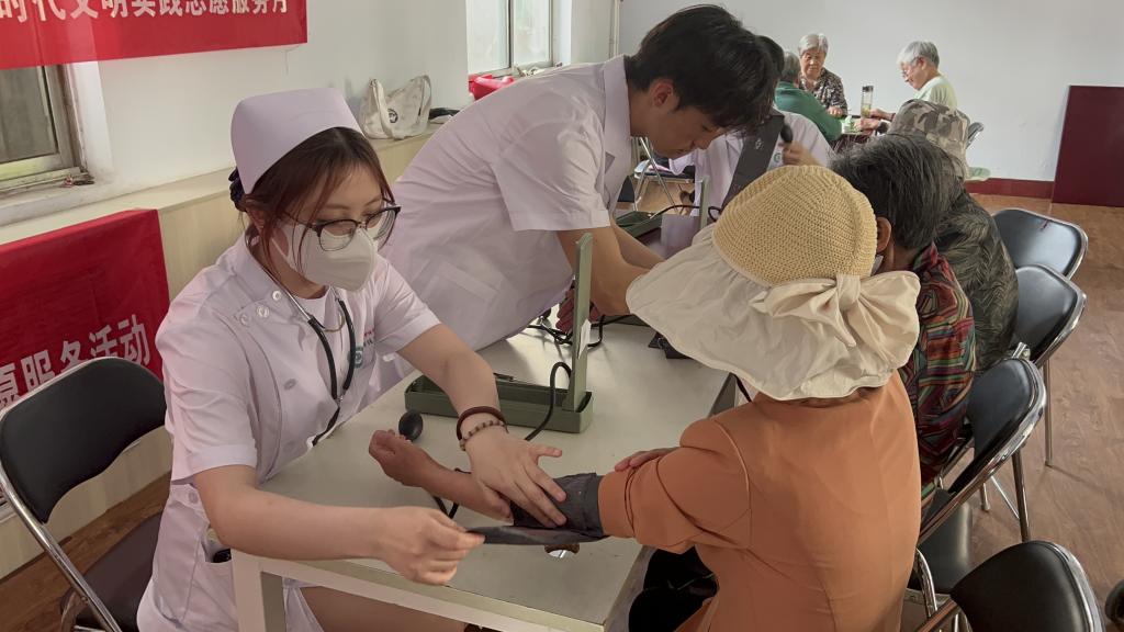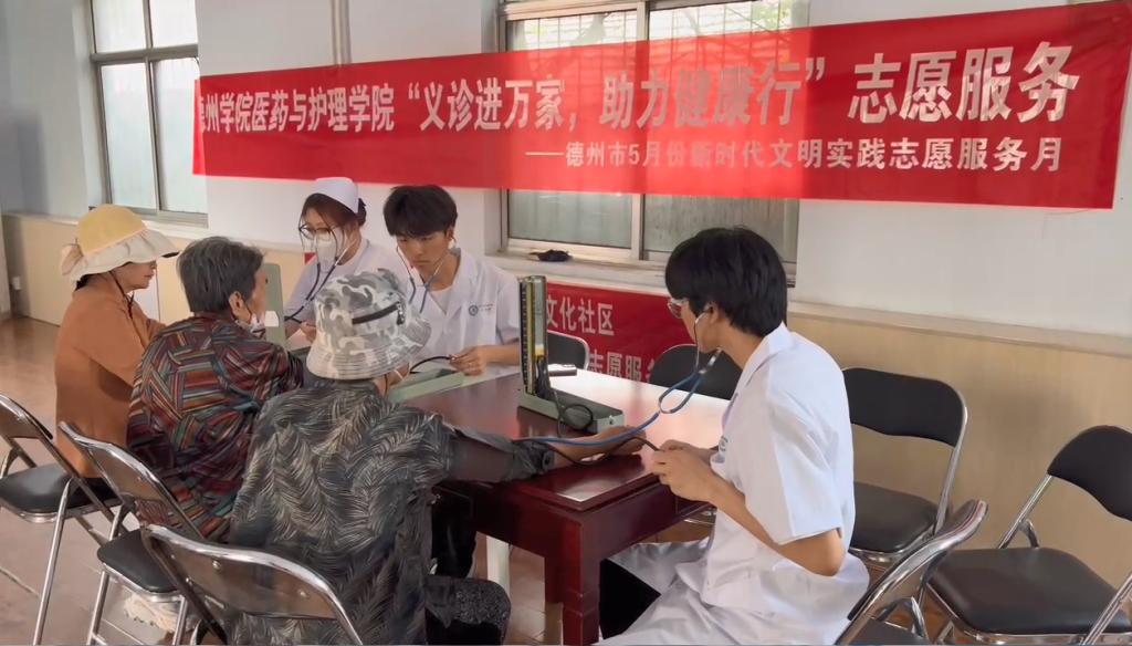 活动过程中,w66医药与护理公司团委书记蔡胜男与德城区广川街道文化社区负责人共同为老员工社区实践基地进行揭牌。揭牌仪式过后,在社区负责人陪同下,公司师生一同参观了社区工作和活动室,双方对下一步工作部署进行交流。随后,医药与护理公司志愿者前往文化社区进行公益义诊,为社区老年人科普预防高血压的方法,以及如何通过健康生活和科学用药避免高血压及并发症的产生,并免费为居民进行血压测量等。前来问诊的居民络绎不绝,大家有序排队进行咨询和检测,志愿者的耐心讲解和热情服务得到了社区居民的一致好评。