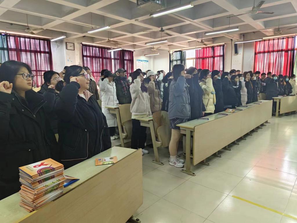 活动伊始,主讲人从艾滋病的定义入手,给大家揭开了艾滋病病因的神秘面纱。随后,主讲人对艾滋病的主要临床症状、相关危害、主要传播途径以及主要预防手段这几个方面进行了详细的解释,增强了同学们的知艾防艾意识。宣讲结束后,同学们在主讲人的带领下进行了庄严的宣誓,保证一定要爱惜自己的身体,进行以健康为前提的活动,不歧视艾滋病人。活动最后进入提问抢答环节,同学们积极竞答有关艾滋病知识,提升自身防艾知识认知度。