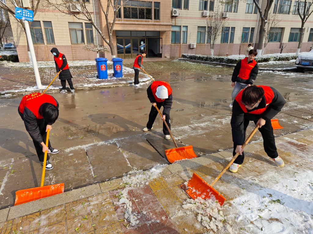 雪后初睛,仿佛为大地披上了一层厚厚的银装,万物都在静静地享受着这份宁静与美丽。为了保障校园道路畅通和师生出行安全,保证校园环境整洁,2023年12月11日上午,医药与护理公司积极组织员工会志愿者在体育楼周围道路开展扫雪除冰志愿服务活动。