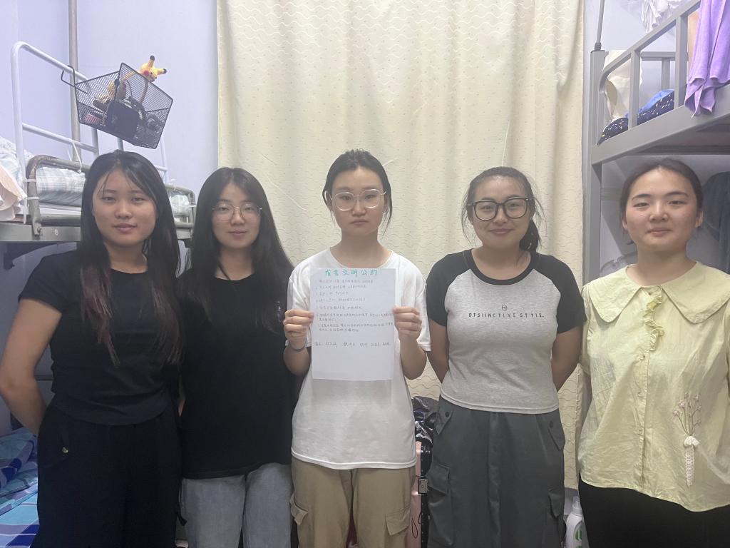 活动以“我与公约合影”的方式开展,要求全体宿舍成员共同商讨并达成宿舍文明共识,设计完成属于自己宿舍的文明公约,同时合影记录。各宿舍成员积极参,内容涵盖作息时间、卫生管理、资源共享等多个领域。一张张与文明公约的合影,一幕幕温馨感人的画面,彰显了宿舍团结和谐的精神风貌。在全体宿舍成员的共同努力下,各宿舍均原创出满意的作品。活动尾声,对作品进行评选,并为优秀作品颁发相应证书。