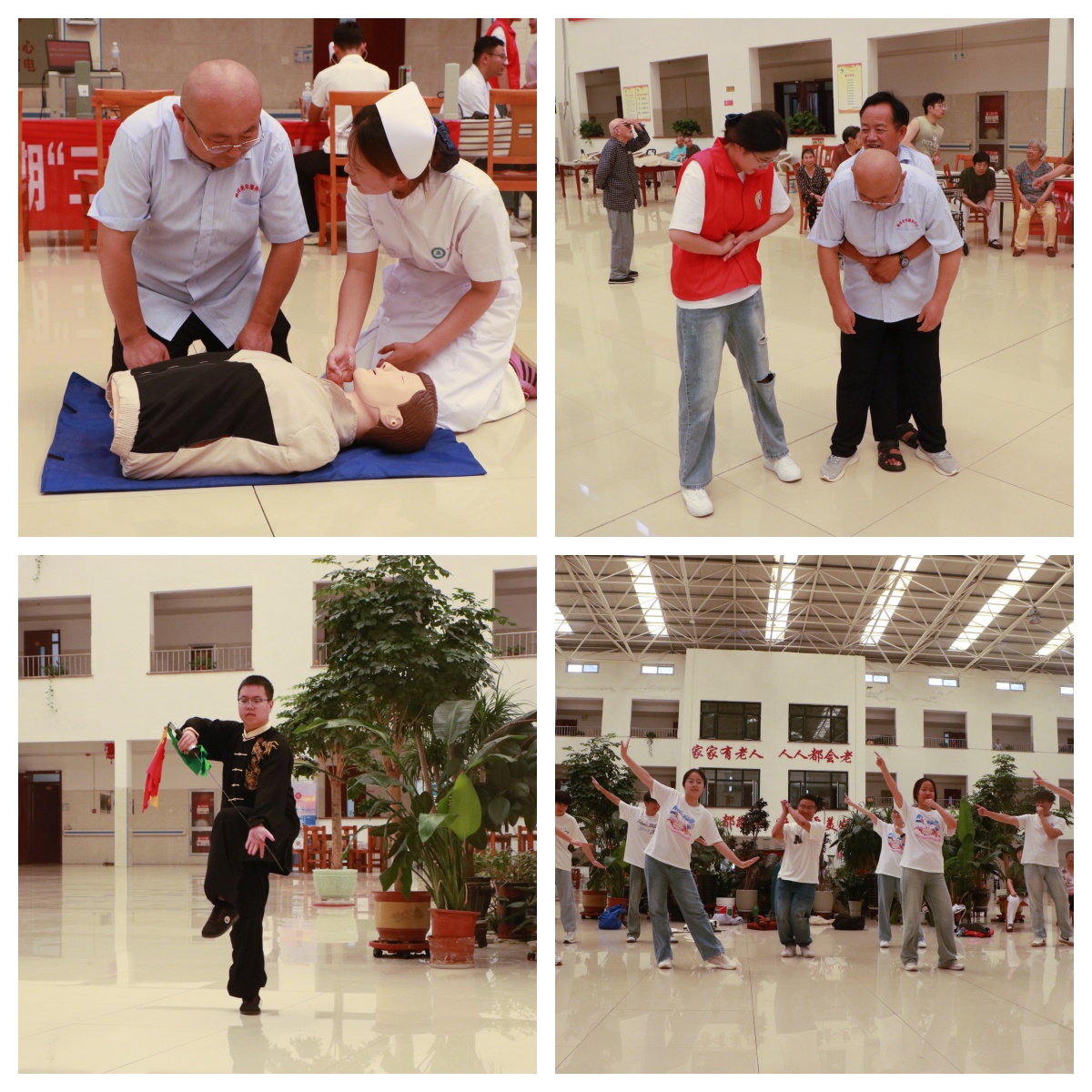 南丁格尔志愿者依托自身医学专业知识,整合公司资源,为老年人提供量血压、测血糖的健康义诊服务,用通俗易懂的语言向老人们提出日常预防、保健方案及治疗建议。志愿者发放健康常识单页,进一步加强老年人对疾病和慢性病的认识和防范。此外,志愿者针对养老护理人员开展了海姆立克法和心肺复苏术等应急救护科普培训,提升护理员在突发事件中的救护能力。活动最后,志愿者为老人表演中华优秀传统文化太极拳、舞蹈等,用自己的实际行动诠释了尊老、爱老、助老的传统美德,不仅让老人们感受到精神上的关爱,更让志愿者们践行了历史文化的传承,充分展现了新时代青年的责任与担当。