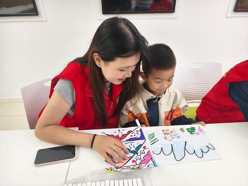本次活动志愿者为青少年准备了“与心灵相约,与健康同行”心理健康宣讲、“表情大拼盘”创意绘画、“我的梦想我做主”理想分享三个项目。首先,志愿者重点围绕“我的情绪压力怎样”“情绪压力对我们的影响”以及“如何缓解释放压力”等关键内容开展宣讲让青少年了解情绪压力对学习生活带来的影响并掌握一系列缓解释放压力的有效方法让孩子们在面对压力时能够更好地应对和调整自己随后,志愿者通过绘画的方式传递和调节情绪,进一步帮助青少年缓减压力,提升专注力青少年用积极的想法和创意作品去释放积压的情绪,感受生命的多彩,热爱生命中的美好。最后,志愿者引导青少年通过听歌识曲猜片名的游戏,说出心目中最喜欢的动画角色以及想要成为什么样的人,并告诉他们梦想的起点就是现在,好好学习、努力奋斗就会离心中的梦想越来越近