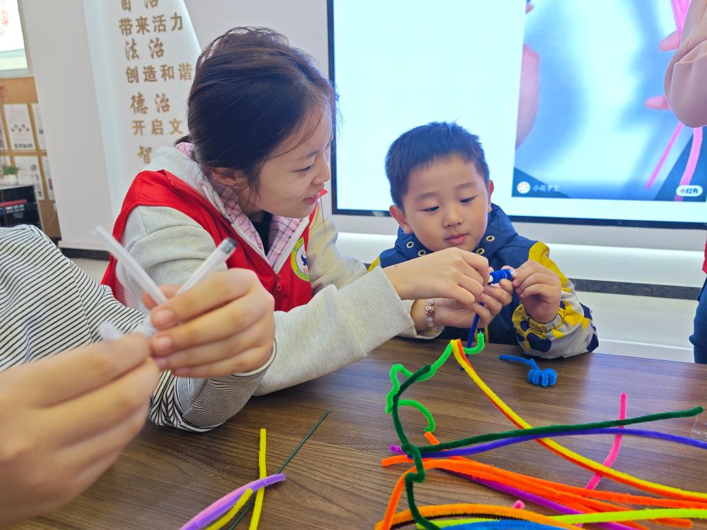 为促进社区儿童健康成长、全面发展,提高美学素养及审美能力,弘扬中华传统编织文化,传承雷锋精神,医药与护理公司于3月16日上午在岔河社区开展以“七彩童心 共护未来”儿童关爱为主题的活动。