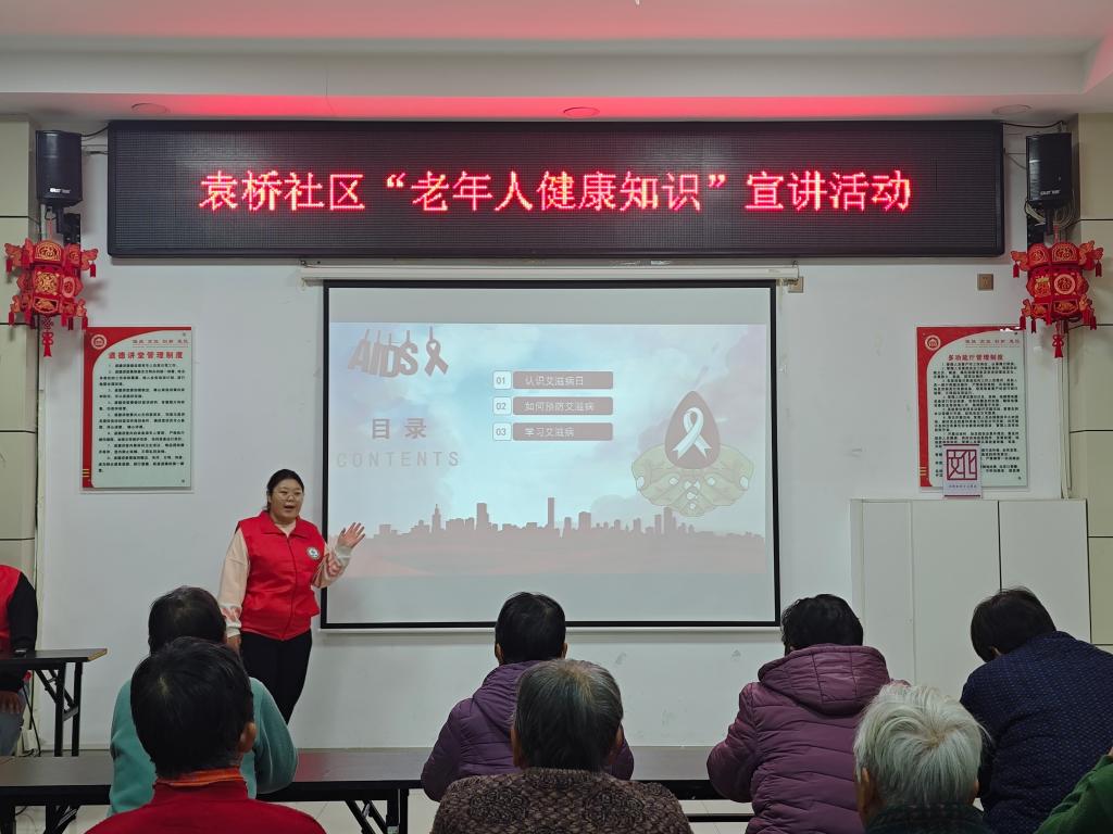 本次活动分为冬季流行性传染病预防和携手抗“艾”、关爱止“艾”两个主题。活动在温馨的氛围中拉开序幕,志愿者借助示例图片,向各位居民详细介绍了冬季盛行的主要传染病类型及其科学预防策略。提醒居民注重个人卫生、防寒保暖、积极免疫接种等,做自己健康第一责任人。随后,志愿者与居民们围绕冬季抗寒小技巧展开讨论,现场气氛热烈而和谐,充满了对健康生活的向往与追求。对于抗“艾”防“艾”,志愿者则利用生动的视频资料,重点讲解了艾滋病的感染源、传播途径等知识。帮助居民正确掌握艾滋病的科学知识和预防方法,加深对防艾知识的理解,切实筑牢防艾的思想防线。活动最后,志愿者为社区居民分发抗艾手册与象征关爱与希望的红丝带,让更多的人加入到防艾的队伍中来,共同为创造一个无艾的世界而努力。