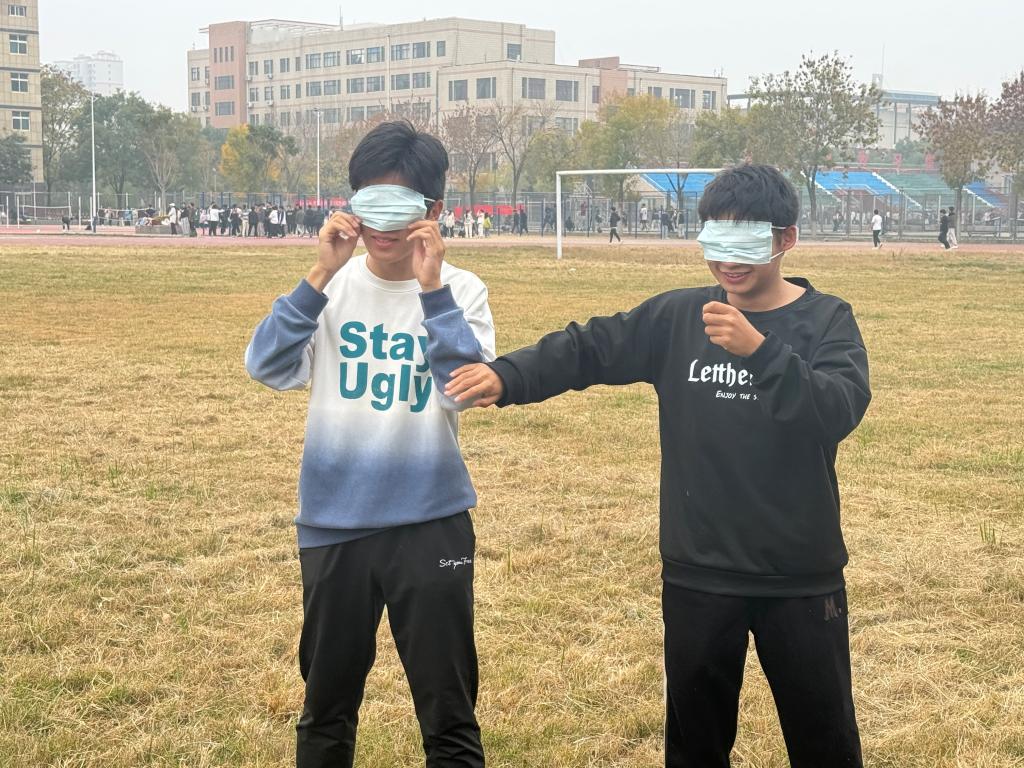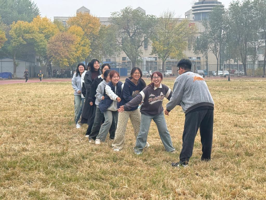 活动伊始,员工会青志部负责人详细介绍了本次活动的规则和注意事项并带领同学们进行了热身活动,为后续的精彩拓展项目做好充分准备。此次活动精心设计了多个拓展项目,包括“陈设树叶装饰”“老鹰捉小鸡”、“蒙眼追捕”等。“陈设树叶装饰”考验着同学们的创意与动手能力,让同学们在大自然的怀抱中感受到属于冬日的独特魅力。“老鹰捉小鸡”、“蒙眼追捕”等传统游戏则让同学们在欢声笑语中锻炼了身体,释放了心理压力。迎着冬日暖阳,同学们感受着友情的温暖与团体的力量,共同书写着难忘的瞬间。
