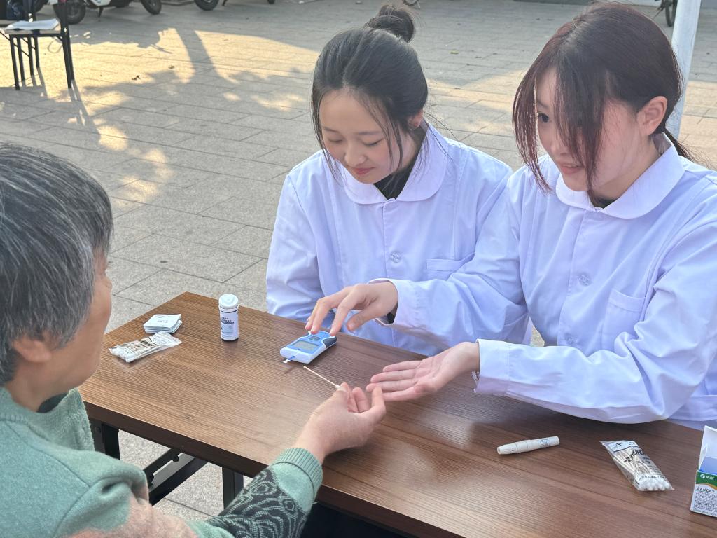 活动伊始,青年志愿者们为岔河社区居民进行健康宣讲。科普宣传“秋季老人心血管疾病预防”和“餐餐有蔬菜,天天有水果”为主题的健康知识,重点强调了有氧运动和戒烟戒酒对于预防心血管疾病的重要作用以及一日三餐应如何搭配才能实现合理膳食。宣讲结束后,志愿者为社区居民进行健康咨询,帮助居民解答心中的疑惑,指导居民养成良好的生活习惯。随后,志愿者们在广场上为社区居民进行血压、血糖测量,并根据测量结果给予用药、运动、饮食方面的建议。