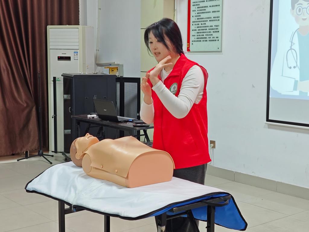 活动在国防科普知识的宣讲中拉开帷幕。主讲人从国际警察日的历史背景讲起,逐步引导社区居民深入了解我国的国防事业,激发居民的爱国情怀和安全责任意识。主讲人紧密联系日常生活实际,阐述作为居民如何践行国家安全理念,鼓励大家从身边的小事做起,共同构筑国家安全防线。同时,为提升居民的自我保护能力,志愿者们现场进行了心肺复苏与海姆立克急救法的实操演练。通过直观的动作示范和细致的操作讲解,居民们初步掌握了急救技能,进一步提升了安全卫生意识,为自己的生命健康增添了有力保障。活动尾声,志愿者们为居民提供血糖测量、健康咨询等健康服务助力居民更好地掌控自身健康状况。