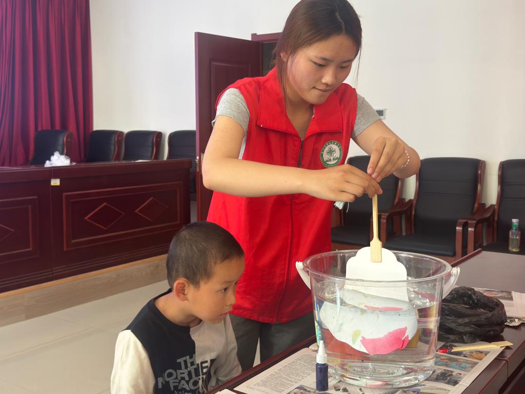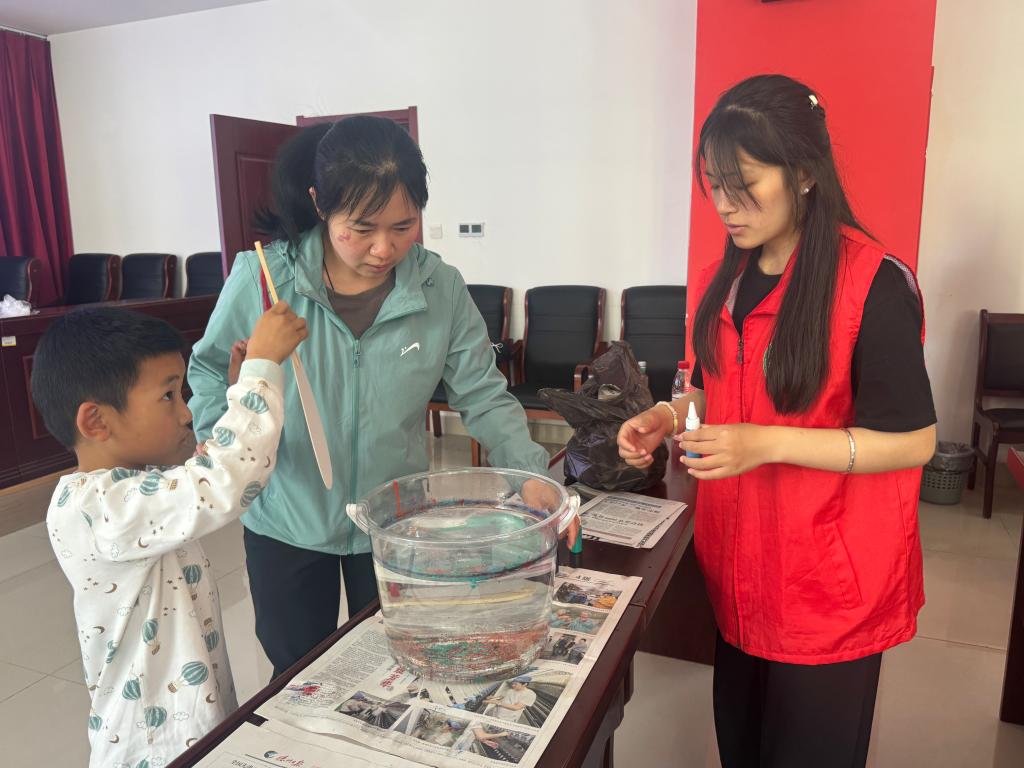 活动伊始,志愿者们通过生动有趣的讲解,向参与活动的小朋友们介绍了母亲节的意义,以及本次漆扇制作所运用的水拓画原理。小朋友们围坐一圈,眼睛里满是好奇与期待,认真聆听每一个步骤。在实践环节,志愿者们小心翼翼地将颜料滴入水中,看着色彩在水面上晕染、交织,形成梦幻般的图案。随后,小朋友们屏住呼吸,缓缓将团扇平放在水面,让绚丽的色彩完美附着在扇面上。在制作过程中,有的小朋友由于是初次尝试,显得有些生疏,颜料在扇面上分布不均,但志愿者们耐心鼓励,并及时协助调整。有的小朋友则展现出超强的动手能力,创作出极具创意的图案,兴奋地高举着自己的作品,与身边的伙伴分享着喜悦。在欢声笑语中,一把把饱含心意的漆扇逐渐成形,每一把都承载着小朋友对母亲的深深爱意。