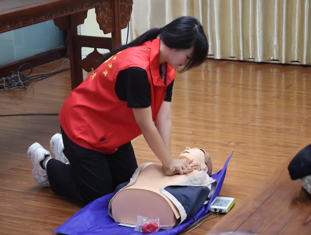 “南丁格尔”志愿服务队精心组织了急救知识培训讲座。队员们通过图文并茂的PPT演示和规范的操作示范,向居民详细讲解了心肺复苏、海姆立克急救法等关键急救技能的操作流程与注意事项,有效提升了居民应对突发状况的能力。