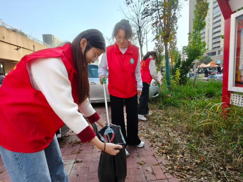 活动现场,主讲人通过生动直观的PPT,聚焦老年群体常见防护误区,针对性纠正认知偏差,详解科学防护要点与日常健康管理技巧,通过互动问答为老人们答疑解惑,让“预防为先、科学防护”的健康理念真正入脑入心,推动健康理念融入居民生活。宣讲结束后,社区的义诊点位迅速有序运转,志愿者们发挥专业所长,为居民提供免费血压、血糖检测服务,志愿者认真记录检测数据,针对不同身体状况给出健康建议,耐心回应疾病预防、康复护理等各类疑问,让便捷专业的健康服务触手可及。此外,团支部还组织志愿者携带清洁工具,对社区绿化带、人行道等公共区域进行垃圾清理与分类规整,同时向过往居民普及垃圾分类知识,倡导绿色低碳生活方式,以实际行动美化社区环境、传递环保理念。