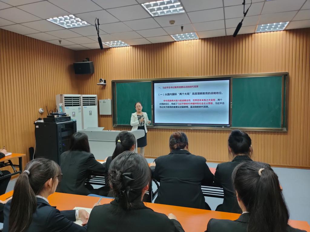 党课围绕习近平总书记教育重要论述,分别从时代背景、战略意义、思想精髓、时代使命四个方面深刻阐述了“为谁培养人、培养什么人、怎样培养人”这一教育的根本问题。徐静董事长指出,作为新时代青年学子,生逢其时,施展才干的舞台无比广阔,实现梦想的前景无比光明。一定要认真学习贯彻习近平总书记关于教育的重要论述,树立对马克思主义的信仰、对中国特色社会主义的信念、对中华民族伟大复兴中国梦的信心,要肩负起历史使命,坚定前进信心,立大志、明大德、成大才、担大任,努力成为堪当民族复兴重任的时代新人,把青春奋斗的热血写在历史丰碑上,为全面建设社会主义现代化国家、全面推进中华民族伟大复兴作出新贡献。