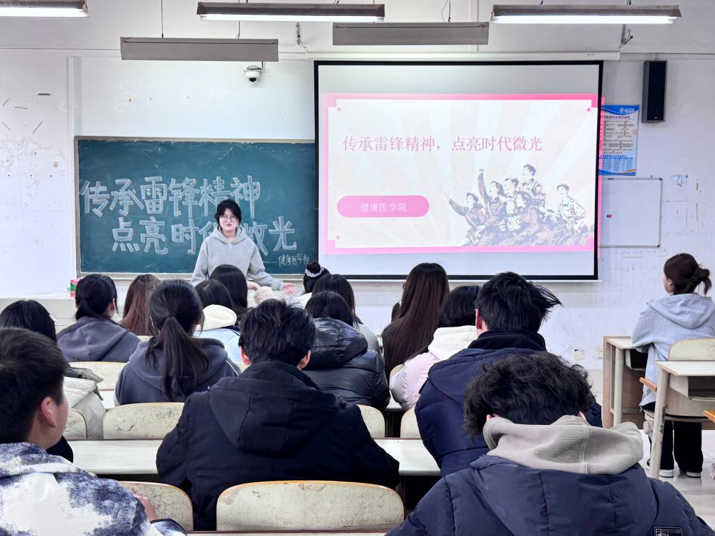 活动正式开始,负责人借助生动形象的讲解与丰富详实的实例,向同学们深入介绍雷锋同志无私奉献、助人为乐的高尚品格,以及他在平凡岗位上创造的非凡业绩。同学们深受触动,对 “奉献、敬业、创新、奋斗” 的雷锋精神有了更为深刻的认知。同时,负责人结合医护人员的职业特性,阐述了新时代青年在医疗健康领域践行雷锋精神的具体路径,引导同学们思考如何为构建和谐社会贡献自己的力量。活动最后声,负责人向在场同学们发出真挚号召,呼吁大家把雷锋精神内化于心、外化于行,用实际行动诠释这一不朽的精神财富。活动结束后,同学们身着志愿服,自发对教室进行打扫整理。大家一致表示,今后要将雷锋精神融入日常生活的点点滴滴,从身边小事做起,为推动社会文明进步贡献自身力量。