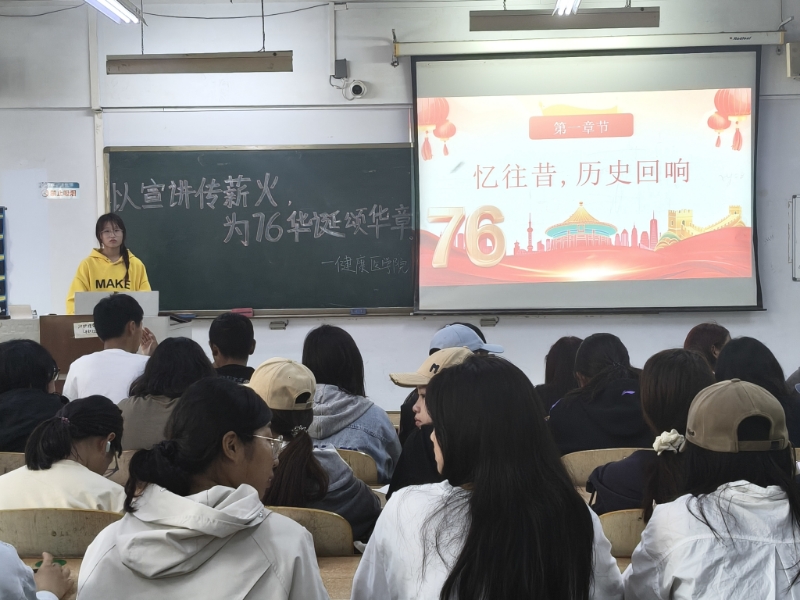 金秋送爽,丹桂飘香。在中华人民共和国成立76周年与中秋佳节交汇之际,w66旗舰厅于9月28日下午在求实楼207教室举办“以宣讲传薪火,为76华诞颂华章”国庆宣讲活动,师生们共上一堂生动的爱国思政课。