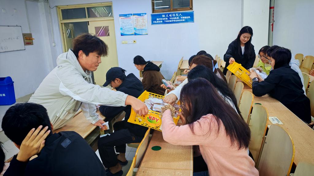 活动伊始,辅导员老师细致讲解国庆的历史意义与中秋的文化内涵,从“天涯共此时”的诗句共情,到“家国同构”的情感联结,让员工们在理解节日文化的同时,感受到“思念可寄于家国”的慰藉,疏解思乡心绪,筑牢情感根基。随后,公司精心筹备的月饼礼盒递到员工手中,每一份礼盒都包裹着香甜与心意,以实物为载体传递学院关怀,让异乡学子真切感受到“留校如归家”的温暖。最后,师生围绕“家国团圆”进行畅谈,学子们敞开心扉分享对家乡的牵挂,也在交流中引起共鸣,这份集体温暖让思乡牵挂转化为对校园的归属感,更让家国情怀在共情中扎根。
