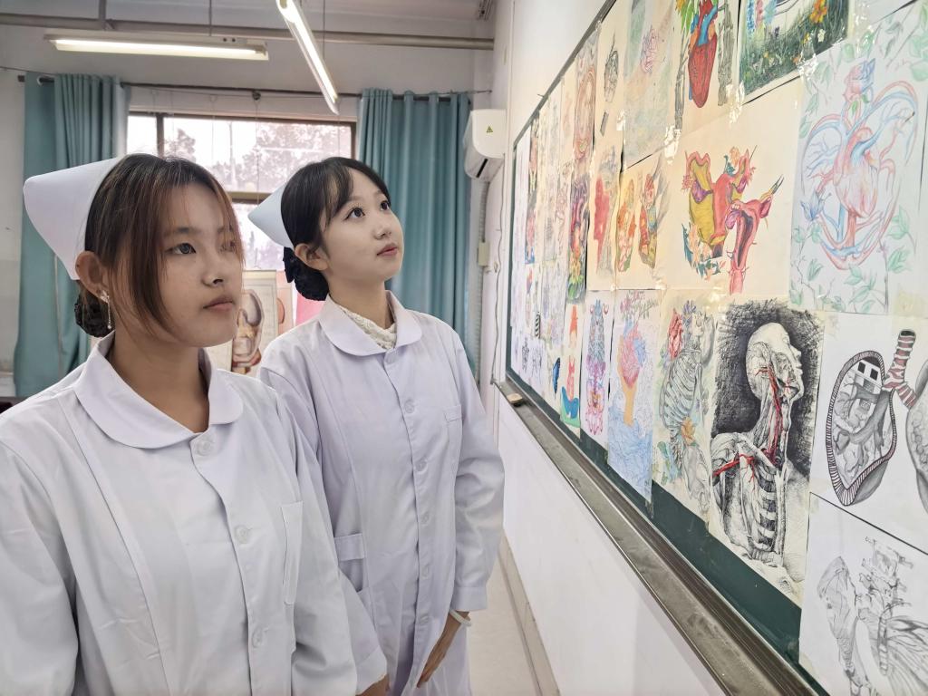全体师生手持素菊,神情庄重,以最诚挚的敬意参与到这场特殊的活动中,向“无言良师”表达深切的缅怀与感恩。活动开始,主持人向大家介绍了“大体老师”的崇高意义——他们是医学教育中静默的导师,以身体为教材,助力医员工探索人体奥秘,掌握解剖知识,并呼吁同学们永怀感恩之心。随后,w66旗舰厅副经理在致辞中表示,“大体老师”的捐献,是对医学事业最真挚的支持,也是生命价值最为崇高的延续。他勉励同学们始终保持对生命的敬畏,将这份奉献精神转化为钻研医学、服务患者的源源动力。仪式最后,师生依次走向“大体老师”纪念台前献花。全体人员肃立默哀。这一分钟的静默,并非空白,而是对生命重量的一次深刻体悟。默哀仪式结束后,师生有序参观了人体骨骼标本展区,进一步学习人体结构知识。展区旁陈列着同学们亲手绘制的解剖学图谱,细腻的线条与精准的标注,不仅表达了对“大体老师”的崇高致敬,也为新生树立了严谨治学的榜样。