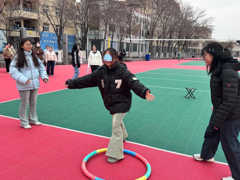 活动采用“心理赋能五维模型”,将认知重构、情绪管理、人际联结等心理健康要素融入闯关设计,创新构建体验式+游戏化教育场景让同学们在肢体互动中感知心理能量在核心环节信任盲行大冒险中,参与者通过随机匹配组成双人搭档,以眼罩构筑的“黑暗世界”为画布,用触觉编织信任的密码。引导者通过轻拍肩部示意转向、握腕引导跨越障碍等非言语互动建立默契,被引导者在完全交付中体验人际支持的温暖力量。同学们在活动后半程已形成独特的肢体交流密码,展现了青年群体强大的适应与共情能力。“当视觉被剥夺时,听觉和触觉变得异常敏锐,这种全身心的托付让我重新理解了信任的内涵。”同学们在分享环节感慨道。
