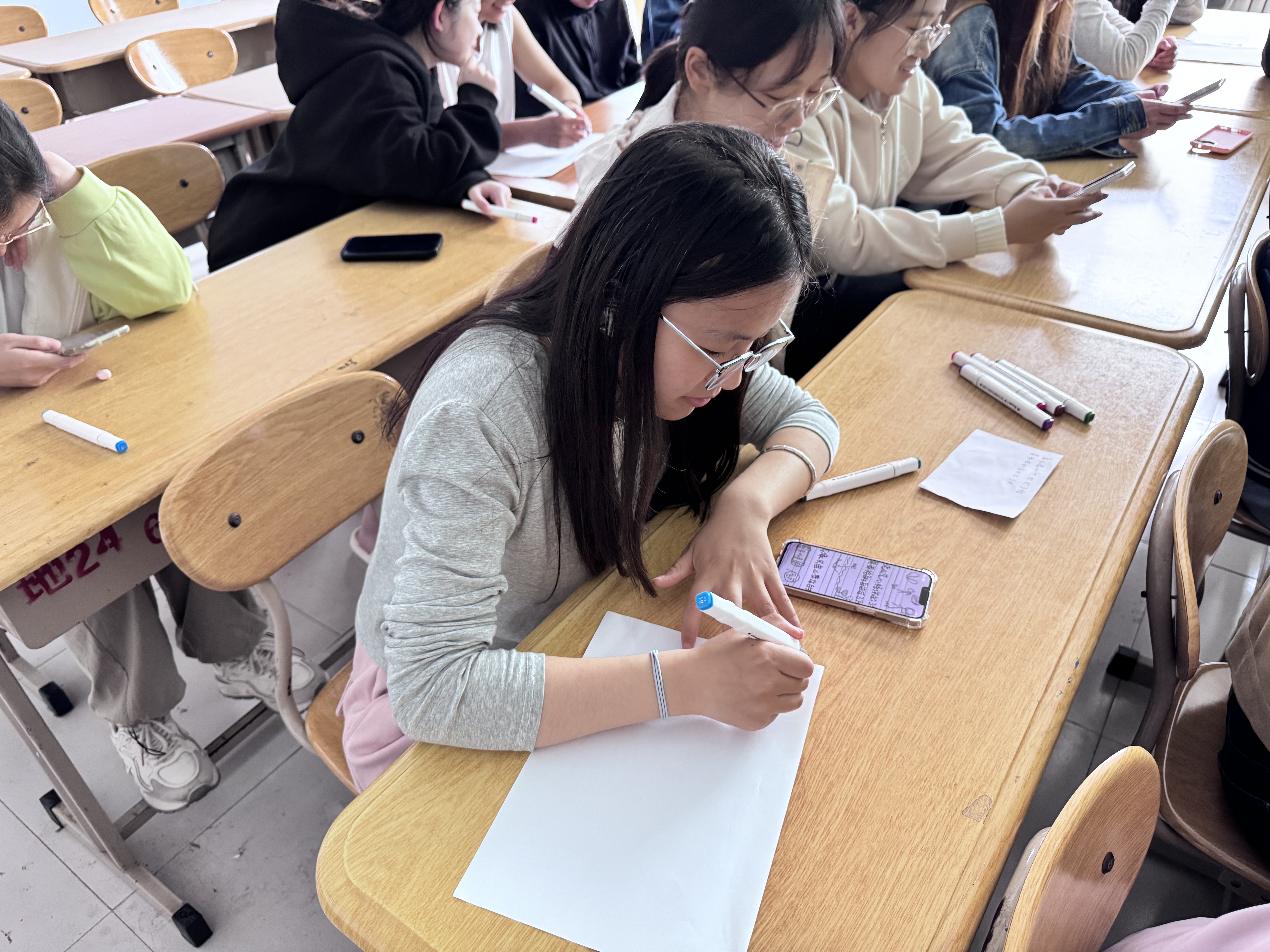 活动以“压力地图”游戏精彩开场。同学们拿起A4纸,以“我”为圆心,将日常生活中的压力源如繁重的学业任务、错综复杂的人际关系等,一一标注在“地图”上,并用细腻的笔触描述压力事件和内心感受。紧接着,主持人化身“解压导师”,针对同学们提及的各类压力,精心分享多种实用解压妙招。从挥洒汗水的运动锻炼,到科学有效的情绪管理技巧,全方位引导同学们直面压力、积极应对。在知识分享后,活动进入轻松愉悦的猜歌环节。熟悉的旋律在教室中流淌,瞬间点燃了现场气氛。同学们热情高涨,纷纷举手抢答,现场欢声笑语此起彼伏。