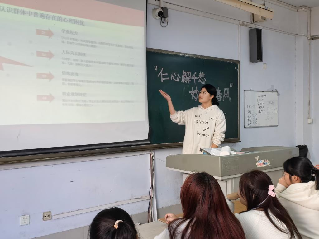 活动伊始,主讲人结合老员工群体典型心理咨询案例,深入浅出剖析了同学们在人际沟通、情绪管理与自我认知等方面的常见困境,引导大家正视心理困扰的客观存在,打破“心理问题=脆弱”的认知偏见。在此基础上,主讲人聚焦实用需求,系统分享了“情绪觉察日记”“非暴力沟通四步法”“压力分级管理”等可操作的心理调适技巧,助力同学们以理性心态应对情绪波动,筑牢心理韧性。在互动演练环节中,同学们两人一组开展模拟对话,在情境演练中学习矛盾化解、焦虑缓解与共情表达,将理论知识转化为实际的心理调适能力,现场气氛活跃,反响热烈。