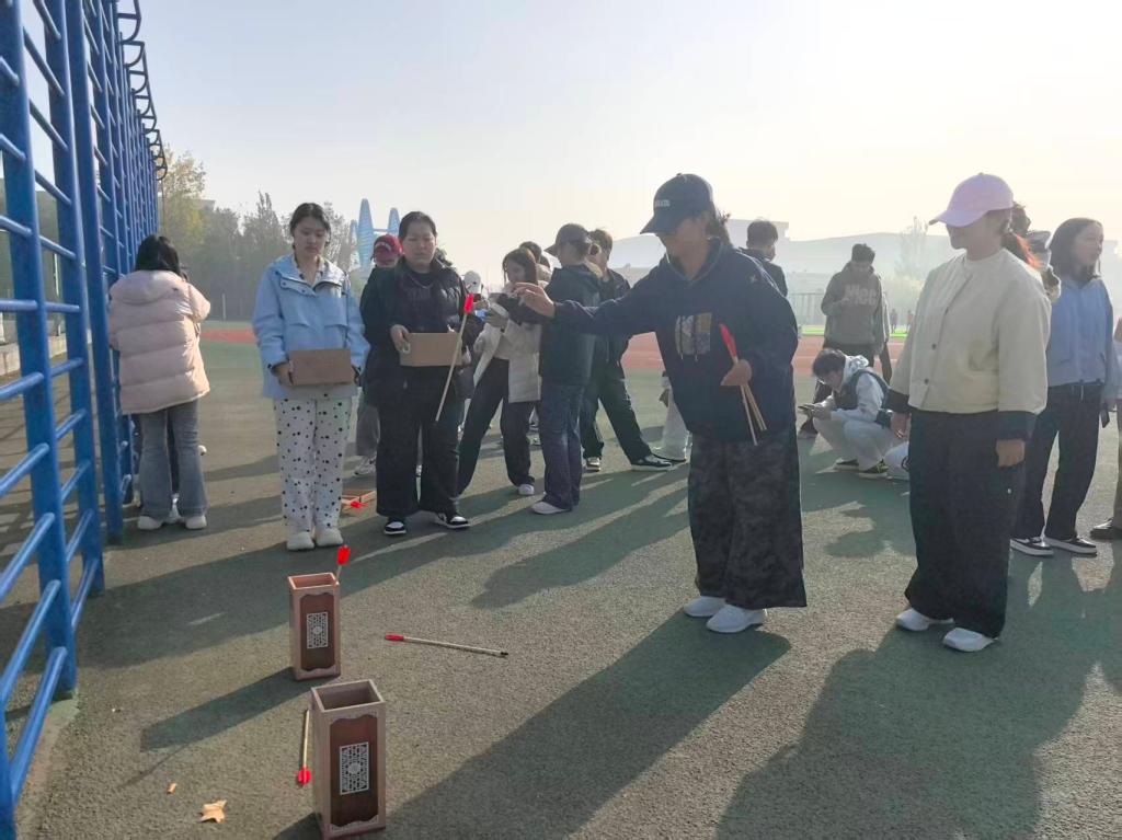活动现场秩序井然、氛围热烈,趣味性与教育意义兼具。志愿者们首先向同学们普及了缓解心理焦虑情绪的实用知识,随后分发投壶工具与情绪便签。同学们静心梳理心绪,将近期的学业压力、生活困惑等焦虑情绪落笔于便签之上,以文字为媒释放内心负荷,让无形的焦虑有了具象的宣泄出口。在投壶比赛环节,参赛同学们凝神聚力、精准投掷,清脆的投中声响与阵阵欢呼声交织,现场氛围热烈高涨。赛后的分享环节更是别具匠心,同学们随机抽取他人写下的便签,结合自身经验现场分享切实可行的应对妙招,在思维碰撞中传递温暖与力量,有效锻炼了应变能力与心理抗压素养。活动尾声,全体参与者合影留念,用镜头定格欢笑瞬间,为本次活动画上圆满句号。