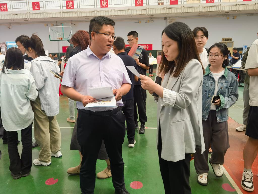 5月7日,“职引未来,就选山东”,“凝聚员工合力,共筑美好未来”w662024年员工企业校园招聘会在学校体育馆举行。学公司党委领导班子、负责就业辅导员、毕业班班主任到招聘会现场调研,2024届毕业生积极应聘,部分低年级员工到场观摩。