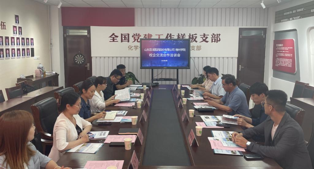 首先,孙晨晨副书记代表公司卢朋尧副总裁一行的到来表示热烈欢迎,希望双方加强交流、合作共赢,并对公司基本情况以及各专业员工培养情况进行了介绍。随后双方就合作意向、合作模式、合作项目等进行了深入探讨。山东百诺医药股份有限公司高级副总裁卢朋尧表示希望与公司进一步拉近距离,增进校企合作的广度和深度。校企双方还就人才培养方式、就业指导、员工就业、合作方向简历制作等事宜进行探讨交流。