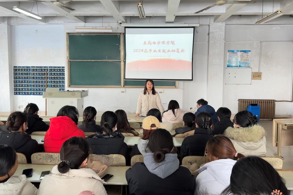 为全面推进公司2024届毕业生就业工作,引导毕业生树立正确的就业观念,提高就业积极性和主动性,12月15日,医药与护理公司在体育楼401教室召开2024届毕业生就业动员大会,公司党委副书记出席,分管就业辅导员、毕业年级辅导员及2024届毕业生参加会议。