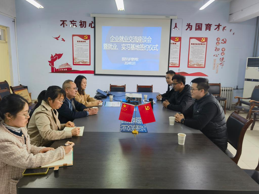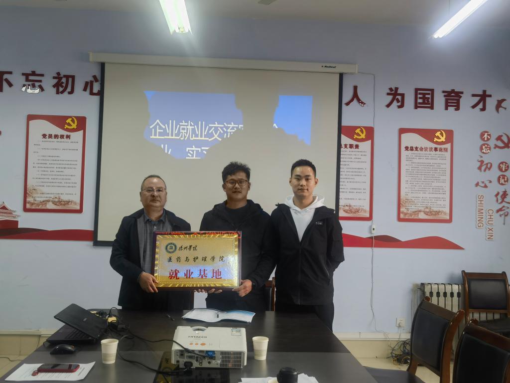 为进一步深化校地合作,持续推动企业和公司健康发展,加强校地融合,医药与护理公司与山东罗欣药业集团股份有限公司、齐鲁晟华制药有限公司两家企业洽谈合作并签署就业基地,公司党委书记、副书记及相关专业教师参加。