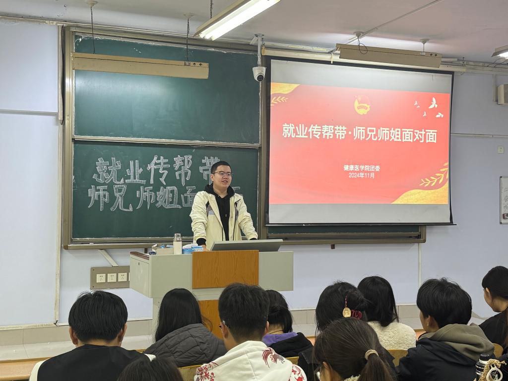 为引导青年员工立足实际、找准定位,实现高质量就业,树立正确就业观、择业观,11月9日下午,健康医公司团委在求实楼212教室举办“就业传帮带·师兄师姐面对面”活动。本次活动邀请了健康医公司优秀员工代表、2021级护理学专业北京301解放军总医院实习员工邵嘉昊担任主讲人。活动由公司员工会负责人主持,相关专业100余名员工参加。