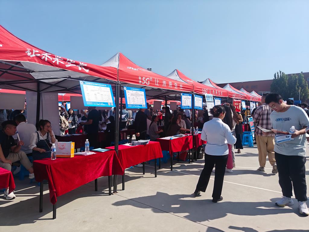 本次活动以“聚人才兴产业,谋共赢促发展”为主题,在山东四方技师公司体育场顺利举行。现场汇聚了京津冀及省会经济圈200余家知名企业,涵盖高端装备制造、新一代信息技术、生物医药等多个重点产业领域,提供优质就业岗位数千个。同学们准备充分、积极投递简历,展现出扎实的专业素养与良好的综合能力。招聘会创新设置“直播带岗”环节,多家重点企业通过抖音、视频号等平台在线推介岗位信息,进一步拓宽了招聘渠道。现场还设有“人社服务专区”,为求职员工提供政策解读、职业指导等一站式就业服务,切实助力员工增强就业竞争力、明确职业发展方向。