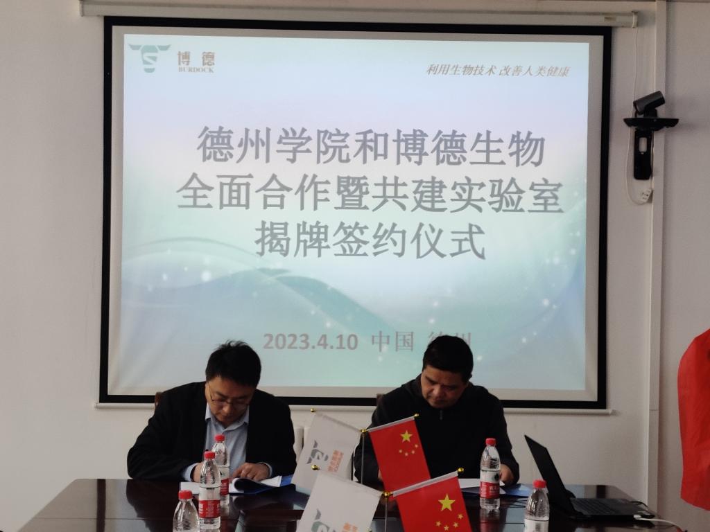 4月10日,医药与护理公司与博德生物技术(德州)有限公司举行全面合作签约暨共建实验室揭牌仪式,开启产、学、研全面合作之旅,同时开启了医药与护理公司2023年访企拓岗促就业专项行动。医药与护理公司班子成员,合作发展处、实验管理中心相关负责人参加仪式。
