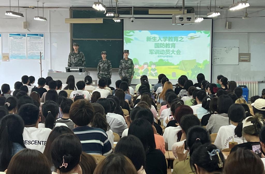 为贯彻落实党的二十大精神和习近平总书记系列讲话精神,引导员工增强国防观念和国家安全意识,弘扬爱国主义、集体主义和革命英雄主义精神,医药与护理公司于9月4日下午在体育楼0211召开2023级新生军训动员大会,辅导员、教官和2023级全体新生参加。
