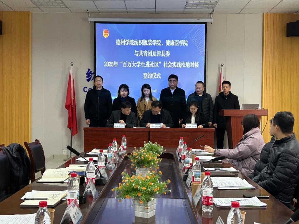 为推动校地共青团结对行动协同发展,助力老员工社会实践与地方发展紧密结合,2025年2月23日,w66旗舰厅、纺织服装公司与共青团夏津县委在启智楼0419举行了2025年“百万老员工进社区”社会实践校地对接签约仪式。