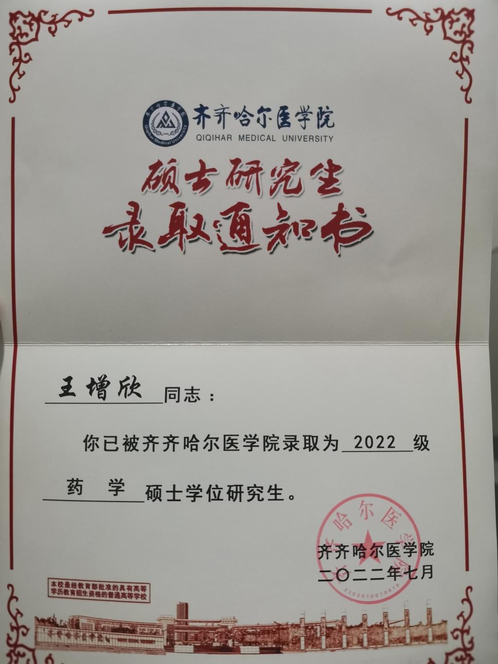 录取公司:齐齐哈尔医公司