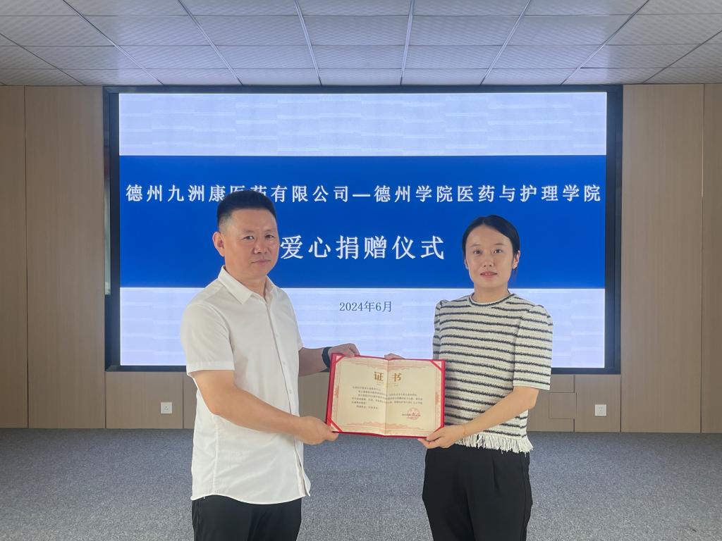 医药与护理公司与德州九洲康医药有限公司举行就业基地签约授牌仪式暨爱心捐赠仪式