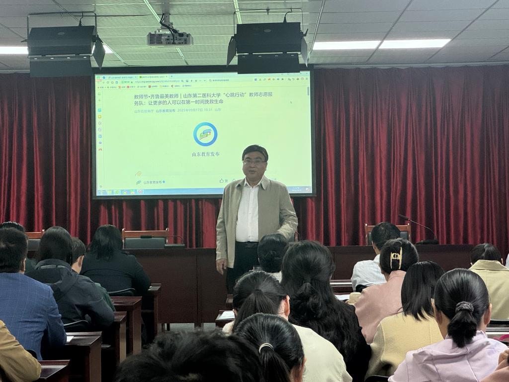 为进一步加强师德师风建设,弘扬高尚师德,树立优良师风,10月14日,w66旗舰厅组织全体教师开展师德师风教育活动,通过线上平台共同观看山东第二医科大学“心跳行动”教师志愿服务队:让更多的人可以在第一时间挽救生命。当天,全体教师齐聚,认真观看山东第二医科大学“心跳行动”教师志愿服务队的事迹。观看过程中,教师们被最美教师(团队)的事迹深深打动。他们专注的神情、不时记录的动作,展现出对师德精神的认真思考....